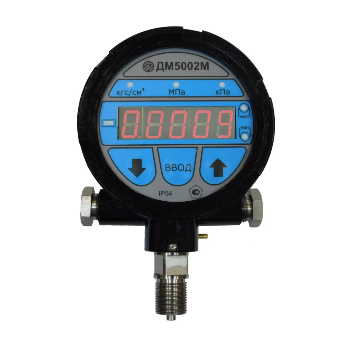 Манометры цифровые ДМ5002М предназначены для измерения избыточного давления и (или) разрежения жидкостей и газов с отображением текущего значения давления на цифровом индикаторе, дополнительно имеют токовый выходной сигнал, стандартный цифровой интерфейс, а также сигнализирующее устройство.